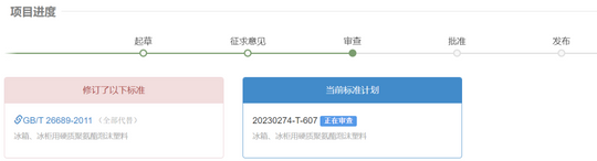 目前,國(guó)家尺度GB/T 26689《冰箱、冷柜用硬質(zhì)聚氨酯泡沫塑料》已經(jīng)完成征求意見環(huán)節(jié),并進(jìn)入審查流程,預(yù)計(jì)將于2024年發(fā)布。