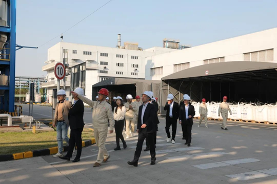 在旭川化學董事長江平、總裁夏鋒的陪同下,聚氨酯各位與會領導觀光了旭川化學廠區(qū)。