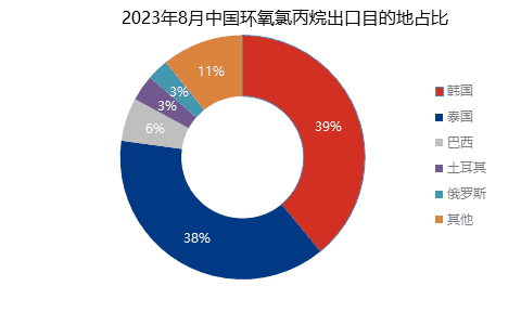 環(huán)氧氯丙烷 截止2023年8月份,中國環(huán)氧氯丙烷出口總量合計在27聚氨酯.07萬噸,同比去年同期跌24.78%國內貨源價低,出口具有較大價格優(yōu)勢,主要出口韓國、泰國等東南亞國家,占比77%。